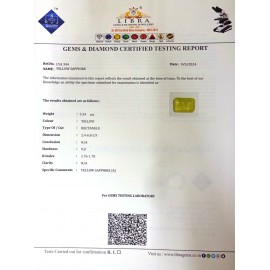 DATE:9-5-2024REF.NO:LYA 344NAME:YELLOW SAPPHIREWEIGHT:3.34 CTSCOLOUR:YELLOW TYPE OF/CUT:RECTANGLEDIMENSION:2.4-6.8-2.9CONCLUSION:N/AHARDNESS:9.0R.INDEX:1.76-1.78CLARITY:N/ASPECIFIC COMM..