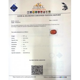 REPORT.NO.LH 828CLARITY.N/ACOLOUR.COCA COLASHAPE/CUT.OVALWT.5.21 CTSDIMENSION.3.8-8.4-5.1R.INDEX.1.92-2.02HARDNESS.6.5-7.5COMMENT.HESSONITE..
