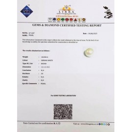 REPORT.NO.LP 1167CLARITY.N/A COLOUR.SHINING WHITE SHAPE/CUT.ROUND WT.5.29 CTS DIMENSION.9.7-9.7-7.4R.INDEX.N/AHARDNESS.3.0COMMENT.PEARL ..