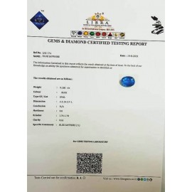 REPORT.NO.LNA 97CLARITY.N/ACOLOUR.BLUE SHAPE/CUT.OVALWT.4.78 CTSDIMENSION.2.8-8.7-3.9R.INDEX.1.76-1.78HARDNESS.9.0COMMENT.BLUE SAPPHIRE {A}..