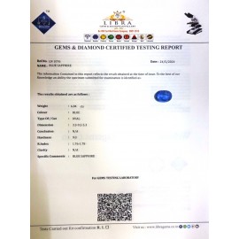 REPORT.NO.LN 819CLARITY.N/ACOLOUR.BLUESHAPE/CUT.OVALWT.7.50 CTSDIMENSION.2.8-10.2-5.6R.INDEX.1.76-1.78HARDNESS.9.0COMMENT.BLUE SAPPHIRE..