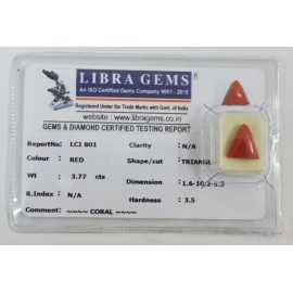 REPORT.NO.-LCI 801CLARITY.-N/ACOLOUR.-REDSHAPE/CUT.-TRIANGLEWT.-3.77 CTSDIMENSION.-1-6.10-2.5-3.R.INDEX.-N/AHARDNESS.35COMMENT.-CORAL..