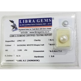 REPORT.NO.-LPKC 57CLARITY.-N/ACOLOUR.-SHINING WHITESHAPE/CUT.-ROUNDWT.-3.86 CTSDIMENSION.-8-5.8-4.7-6.R.INDEX.-N/AHARDNESS.-3.0COMMENT.-PEARL K.C { HONGKOK }..