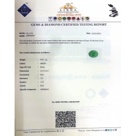 REPORT.NO.-LEJ 161CLARITY.-N/ACOLOUR.-GREENSHAPE/CUT.-OVALWT.-3.70 CTSDIMENSION.-1.6-8.6-5.8R.INDEX.-1.57HARDNESS.-7.5COMMENT.-EMERALD {J}..