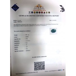 DATE:2025REF.NO:LE 1712NAME:EMERALDWEIGHT:9.24 CTSCOLOUR:GREENTYPE OF/CUT:OVALDIMENSION:5-5.1-5.7-4.CONCLUSION:N/AHARDNESS:7.5R.INDEX:1.57CLARITY:N/ASPECIFIC COMMENTS:EMERALD..