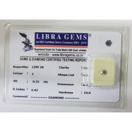 REPORT NO . LDM34CLARITY . VS-1COLOUR . ISHAPE / CUT . ROUNDWT . 0.28 CTSDIMENSION . 4-2.2-5.4-2.R . INDEX . 2.42HARDNESS . 10.0COMMENT . DIAMOND..