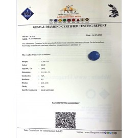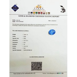 DATE:1-7-2024REF.NO:LN 1234NAME:BLUE SAPPHIREWEIGHT:8.54 CTSCOLOUR:BLUETYPE OF/CUT:OVALDIMENSION:1.8-10.1-8.1CONCLUSION:N/AHARDNESS:9.0R.INDEX:1.76-1.78CLARITY:N/ASPECIFIC COMMENTS:BLUE SAPP..