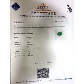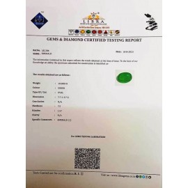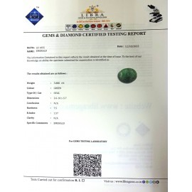 REPORT NO . LE 20CLARITY . N/ACOLOUR . GREENSHAPE / CUT . OVALWT . 3.10 CTSDIMENSION . 1-1.8-5.4-9.R . INDEX . 1.57HARDNESS . 7.5COMMENT . EMERALD..