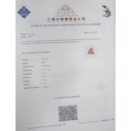 REPORT.NO.LCI 593CLARITY.N/ACOLOUR.RED SHAPE/CUT.TRIANGLE WT.3.53 CTSDIMENSION.1.9-10.6-5.1R.INDEX.N/AHARDNESS.3.5COMMENT.CORAL..