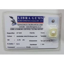 REPORT NO . LP 625CLARITY . N/ACOLOUR . SHINING WHITESHAPE / CUT . ROUNDWT . 3.76 CTSDIMENSION . 8-1.8-1.6-9.R . INDEX . N/AHARDNESS . 3.0COMMENT . PEARL..