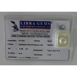 REPORT NO . LP 561CLARITY . N/ACOLOUR . SHINING WHITESHAPE / CUT . ROUNDWT . 5.69 CTSDIMENSION . 10-1.10-1.6-5.R . INDEX . N/AHARDNESS . 3.0COMMENT . PEARL..