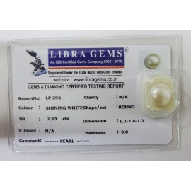 REPORT NO . LP 296CLARITY . N/ACOLOUR . SHINING WHITESHAPE / CUT . ROUNDWT . 7.93 CTSDIMENSION . 1-2.7-4.1-2.R . INDEX . N/AHARDNESS . 3.0COMMENT . PEARL..