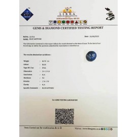 REPORT.NO.LN 448CLARITY.N/ACOLOUR.BLUE SHAPE/CUT.OVALWT.6.62 CTSDIMENSION.10.9-8.9-7.2R.INDEX.1.76-1.78HARDNESS.9.0COMMENT.BLUE SAPPHIRE ..