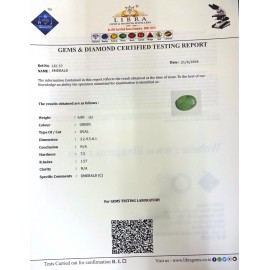 REPORT NO . LEJ 48CLARITY . N/ACOLOUR . GREENSHAPE / CUT . OVALWT . 3.13 CTSDIMENSION . 1-2.8-9.5-4.R . INDEX . 1.57HARDNESS . 7.5COMMENT . EMERALD ( J )..