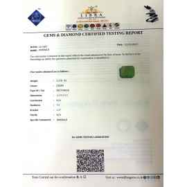 REPORT.NO.LEJ 218CLARITY.N/ACOLOUR.GREENSHAPE/CUT.RECTANGLE WT.5.86 CTSDIMENSION.3.9-8.7-5.3R.INDEX.1.57HARDNESS.7.5COMMENT.EMERALD {J}..