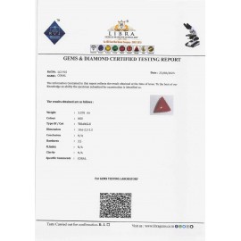 REPORT NO . LCI 382CLARITY . N/ACOLOUR . REDSHAPE / CUT . TRIANGLEWT . 3.51 CTSDIMENSION . 10-8.9-6.5-6.R . INDEX . N/AHARDNESS . 3.5COMMENT . CORAL..