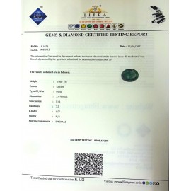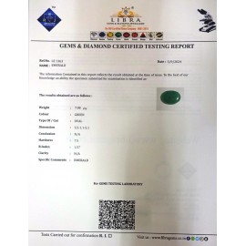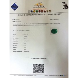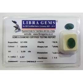 REPORT.NO.LE 430CLARITY.N/ACOLOUR.GREENSHAPE/CUT.OVALWT.3.59 CTSDIMENSION. 4-8.1-4.8-5.R.INDEX.1.57HARDNESS.7.5COMMENT.EMERALD..