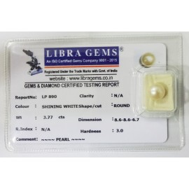 REPORT NO . LP 890CLARITY . N/ACOLOUR . SHINING WHITESHAPE / CUT . ROUNDWT . 3.77 CTSDIMENSION . 8-6.8-6.6-7.R . INDEX . N/AHARDNESS . 3.0COMMENT . PEARL..