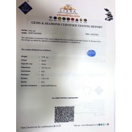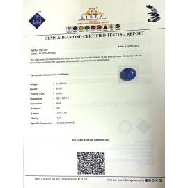 DATE:2025REF.NO:LNA 133NAME:BLUE SAPPHIREWEIGHT:3.14 CTSCOLOUR:BLUETYPE OF/CUT:OVALDIMENSION:10-7.8-1.5-5.CONCLUSION:N/AHARDNESS:9.0R.INDEX:1.76-1.78CLARITY:N/ASPECIFIC COMMENTS:BLUE SAPPHIR..