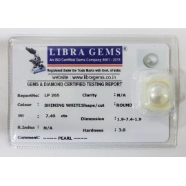 REPORT NO . LP 265CLARITY . N/ACOLOUR . SHINING WHITESHAPE / CUT . ROUNDWT . 7.40 CTSDIMENSION . 1-9.7-4.1-9.R . INDEX . N/AHARDNESS . 3.0COMMENT . PEARL..