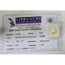 REPORT NO . LP 858CLARITY . N/ACOLOUR . SHINING WHITESHAPE / CUT . ROUNDWT . 4.29 CTSDIMENSION . 8-9.6-5.8-9.R . INDEX . N/AHARDNESS . 3.0COMMENT . PEARL..
