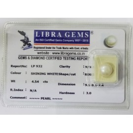 REPORT.NO-LP 932CLARITY-N/ACOLOUR-SHINING WHITESHAPE/CUT-RUNDWT-4.54 CTSDIMENSION-9.1-9.1-7.4R.INDEX-N/AHARDNESS-3.0COMMENT-PEARL..