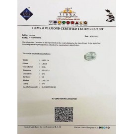 DATE: 17-3-2025REF.NO: LNS 240NAME: BLUE SAPPHIREWEIGHT: 6.84 CTS COLOUR: L.BLUETYPE OF/CUT: OVALDIMENSION: 3.8-9.1-4.9/CONCLUSION: N/AHARDNESS: 9.0R.INDEX: 1.76-1.78CLARITY: N/A ..