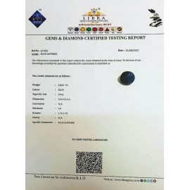 REPORT NO . LN 27CLARITY . N/ACOLOUR . BLUESHAPE / CUT . OVALWT . 6.04 CTSDIMENSION . 3-4.9-5.4-8.R . INDEX . 1.76-1.78HARDNESS . 9.0COMMENT . BLUE SAPPHIRE..