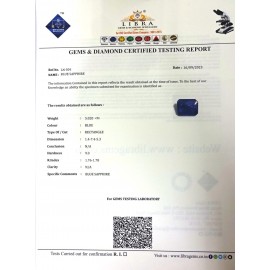 REPORT.NO.LN 618CLARITY.N/ACOLOUR.BLUESHAPE/CUT.RECTANGLEWT.13.47 CTSDIMENSION.1.7-1.2-8.8R.INDEX.1.76-1.78HARDNESS.9.0COMMENT.BLUE SAPPHIRE..