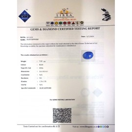 DATE:23-5-2024REF.NO:LN 1171NAME:BLUE SAPPHIREWEIGHT:6.50 CTSCOLOUR:BLUE TYPE OF/CUT:OVALDIMENSION:10.1-7.6-6.7CONCLUSION:N/AHARDNESS:9.0R.INDEX:1.76-1.78CLARITY:N/ASPECIFIC COMMENTS:BL..