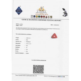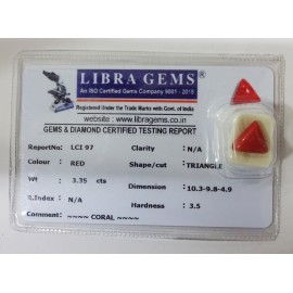 REPORT.NO.-LCI 808CLARITY.-N/ACOLOUR.-REDSHAPE/CUT.-TRIANGLEWT.-3.50 CTSDIMENSION.-1-1.10-5.5-5.R.INDEX.-N/AHARDNESS.35COMMENT.-CORAL..