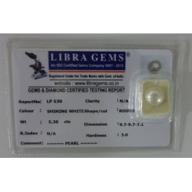 REPORT NO . LP 530CLARITY . N/ACOLOUR . SHINING WHITESHAPE / CUT . ROUNDWT . 5.38 CTSDIMENSION . 9-7.9-7.9-7.R . INDEX . N/AHARDNESS . 3.0COMMENT . PEARL..