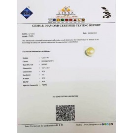 DATE: 15-4-2025REF.NO: LPKC 224  NAME: PEARLWEIGHT: 4.30 CTSCOLOUR: SHINING WHITETYPE OF/CUT: OVALDIMENSION: 10.6-9.1-7.1/CONCLUSION: N/AHARDNESS: 3.0R.INDEX: N/ACLARITY: N/ASPECIFIC COMMENT..