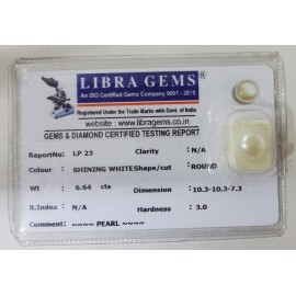 REPORT NO . LP 23CLARITY . N/ACOLOUR . SHINING WHITESHAPE / CUT . ROUNDWT . 6.64 CTSDIMENSION . 10-3.10-3.7-3.R . INDEX . N/AHARDNESS . 3.0COMMENT . PEARL..
