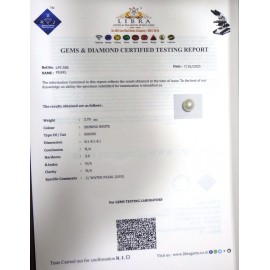 REPORT.NO.LPSC 129CLARITY.N/ACOLOUR.SHINING WHITESHAPE/CUT.ROUND WT.6.19 CTSDIMENSION.9.7-9.4-9.5R.INDEX.N/AHARDNESS.3.0COMMENT.PEARL {SOUTH SEA}..