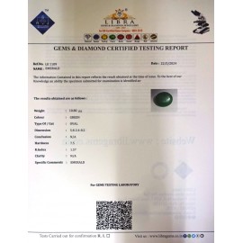 REPORT.NO.LE 588CLARITY.N/ACOLOUR.GREENSHAPE/CUT.OVALWT.6.09 CTSDIMENSION.3.8-10.2-5.6R.INDEX.1.57HARDNESS.7.5COMMENT.EMERALD ..