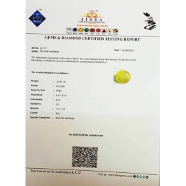 REPORT NO . LY 72CLARITY . N/ACOLOUR . YELLOWSHAPE / CUT . OVALWT . 3.95 CTSDIMENSION . 9-2.7-8.5-6.R . INDEX . 1.76-1.78HARDNESS . 9.0COMMENT . YELLOW SAPPHIRE..