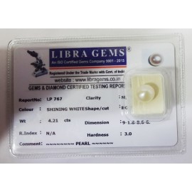 REPORT NO . LP 767CLARITY . N/ACOLOUR . SHINING WHITESHAPE / CUT . ROUNDWT . 4.21 CTSDIMENSION . 9-1.8-8.6-6.R . INDEX . N/AHARDNESS . 3.0COMMENT . PEARL..