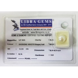 REPORT.NO-LP 905CLARITY-N/ACOLOUR-SHINING WHITESHAPE/CUT-ROUNDWT-4.16 CTSDIMENSION-8.9-8.9-6.6R.INDEX-N/AHARDNESS-3.0COMMENT-PEARL..