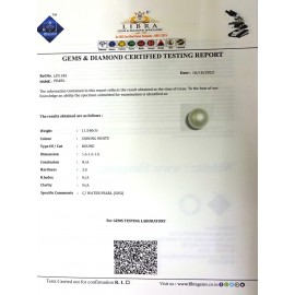 REPORT NO . LPS 144CLARITY . N/ACOLOUR . SHINING WHITESHAPE / CUT . ROUNDWT . 12.72 CTSDIMENSION . 2-1.1-9.1-9.R . INDEX . N/AHARDNESS . 3.0COMMENT . C / WATER PEARL { SOSI }..