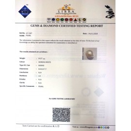 DATE:19-11-2024REF.NO:LP 1587NAME:PEARLWEIGHT:10.27 CTSCOLOUR:SHINING WHITETYPE OF/CUT:ROUNDDIMENSION:8.8-8.8-7.7CONCLUSION:N/AHARDNESS:3.0R.INDEX:N/ACLARITY:N/ASPECIFIC COMMENTS:PEARL..