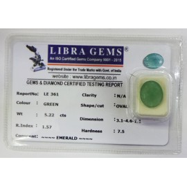 REPORT.NO.LE 361CLARITY.N/ACOLOUR.GREENSHAPE/CUT.OVALWT.5.22 CTSDIMENSION. 3-1.4-6.1-1.R.INDEX.1.57HARDNESS.7.5COMMENT.EMERALD..