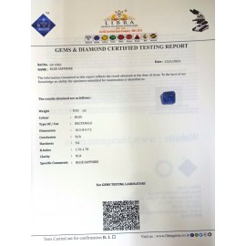 DATE:23-5-2024REF.NO:LN 1063NAME:BLUE SAPPHIREWEIGHT:8.56 CTSCOLOUR:BLUE TYPE OF/CUT:RECTANGLEDIMENSION:10.5-8.9-7.2CONCLUSION:N/AHARDNESS:9.0R.INDEX:1.76-1.78CLARITY:N/ASPECIFIC COMMEN..