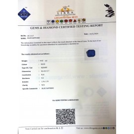 REPORT.NO.LN 856CLARITY.N/ACOLOUR.BLUESHAPE/CUT.OVALWT.7.03 CTSDIMENSION.3.1-1.3-4.3R.INDEX.1.76-1.78HARDNESS.9.0COMMENT.BLUE SAPPHIRE..