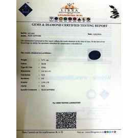 REPORT.NO.LN 595CLARITY.N/ACOLOUR.BLUESHAPE/CUT.OVALWT.8.52 CTSDIMENSION.3.6-1.5-5.1R.INDEX.1.76-1.78HARDNESS.9.0COMMENT.BLUE SAPPHIRE..
