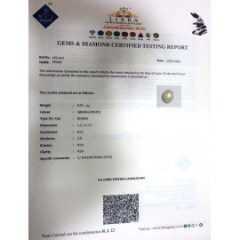 REPORT.NO.LPSC 103CLARITY.N/ACOLOUR.SHINING WHITESHAPE/CUT.ROUND WT.6.72 CTSDIMENSION.9.9-9.8-9.8R.INDEX.N/AHARDNESS.3.0COMMENT.PEARL {SOUTH SEA}..
