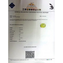 REPORT NO . LY 100CLARITY . N/ACOLOUR . YELLOWSHAPE / CUT . OVALWT . 4.20 CTSDIMENSION . 10-3.7-5.5-1.R . INDEX . 1.76-1.78HARDNESS . 9.0COMMENT . YELLOW SAPPHIRE..