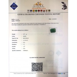 REPORT.NO.-LE 290CLARITY.-N/ACOLOUR.-GREENSHAPE/CUT.-OVALWT.-4.20 CTSDIMENSION.-3-1.9-8.4-5.R.INDEX.-1.57HARDNESS.-7.5COMMENT.-EMERALD..