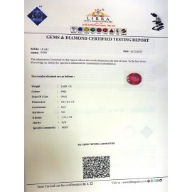 REPORT NO . LR 99CLARITY . N/ACOLOUR . PINKSHAPE / CUT . OVALWT . 4.70 CTSDIMENSION . 10-2.7-8.5-5.R . INDEX . 1.76-1.78HARDNESS . 9.0COMMENT . RUBY..
