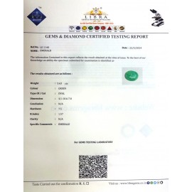 REPORT.NO.-LE 666CLARITY.-N/ACOLOUR.-GREENSHAPE/CUT.-OVALWT.-5.04 CTSDIMENSION.-2-2.9-6.5-6.R.INDEX.-1.57HARDNESS.-7.5COMMENT.-EMERALD..